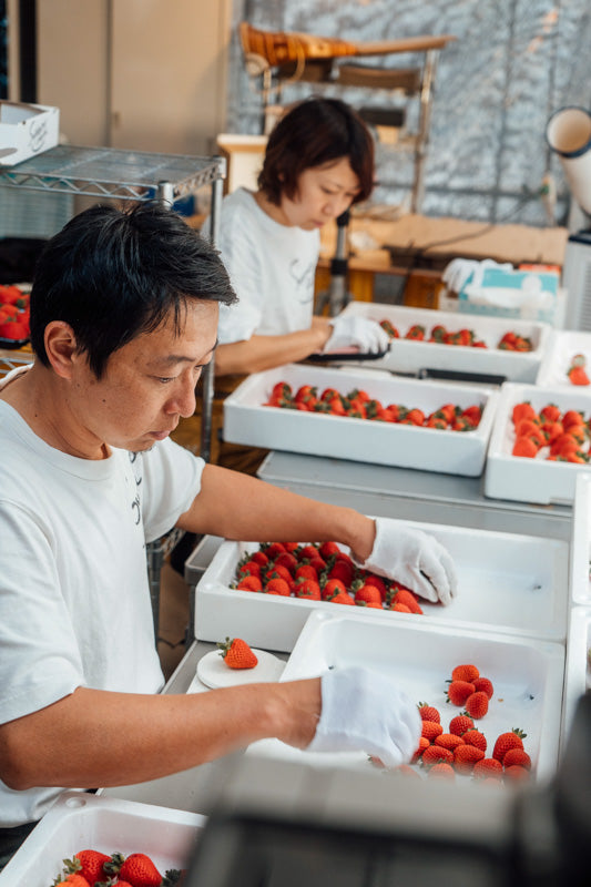 - こだわりの有機アミノ酸肥料をタップリ果実に吸い込ませることでコクや甘みが一味違う特別ないちごになるよう栽培管理しています。