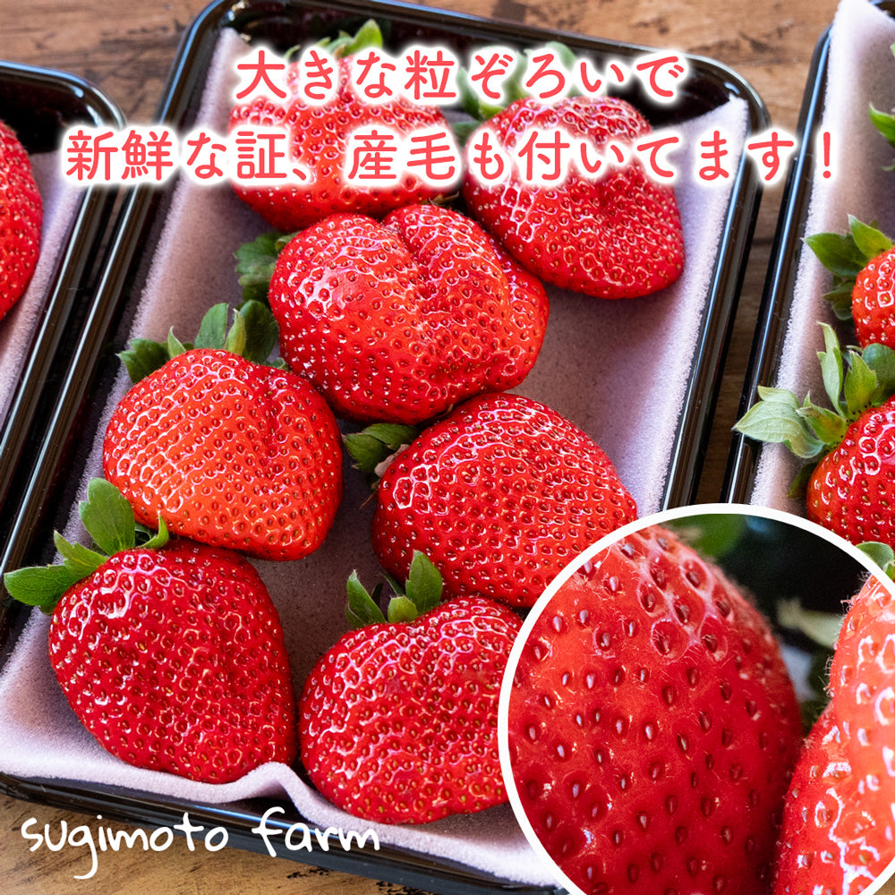 そんな希少でこだわりの「sugimotofarmさちのかいちご」を是非、ご賞味ください。